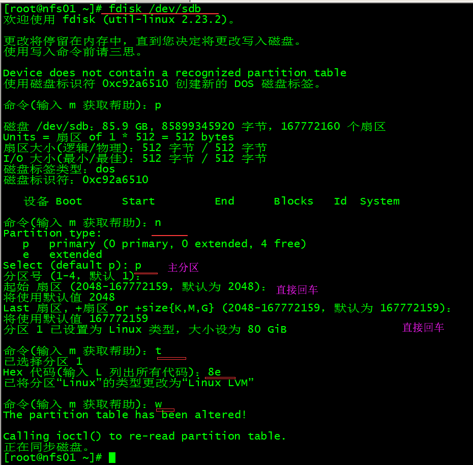 四、配置DRBD 4.1、格式化sdb,创建LVM分区。 (每个节点都要做)