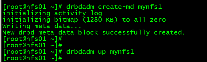 nfs01 设置为主 drbdadm primary mynfs1 --force