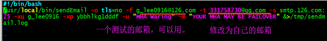vim /etc/mha/app1.cnf ## 修改配置文件,指定 发邮件的脚本 report_script=/usr/local/bin/send
