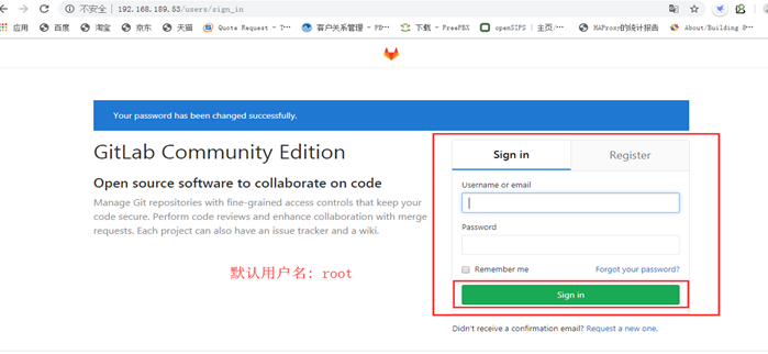 登录gitlab WEB界面:第一次登录,需要设置一个密码。密码最少8位![]()