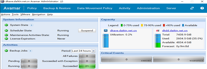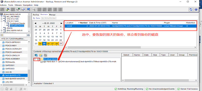 Avamar-19.3.0恢复虚拟机 源虚拟机最好是关机状态 恢复的虚拟机:test-dp4400-c79 IP: 172.31.7.47 2022-01-29 恢复到 2022-01-25 用客户端登录Avamar ########++++++++ 进入Administration 菜单: 还原时,原虚拟机最好是关机状态。 登录后台(172.31.3.55)查看:ddboost show stats interval 2 count 1000 查看日志: ##验证: 将原有虚拟机关机 ,开启还原的新的虚拟机